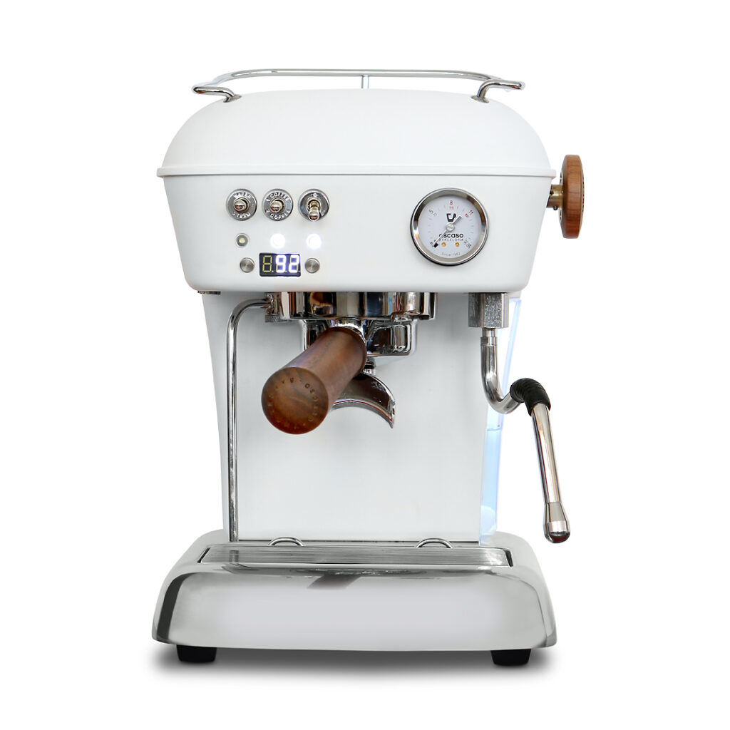 Mit der ursprünglichen ascaso Dream hat die Dream PID eigentlich nur noch das Gehäuse gemein. In der niedlichen Verpackung steckt nun ein echtes Barista-Tool. Gradgenaue Themperaturvorwahl, einstellbare elektronische Pre-Infusion, Shot-Clock, Portionierelektronik für zwei Mengen, ein Profi-Siebträger und die von außen zugängliche Brühdruckregulierung bieten alles, was zur optimalen Extraktion hochwertiger Espressi benötigt wird.