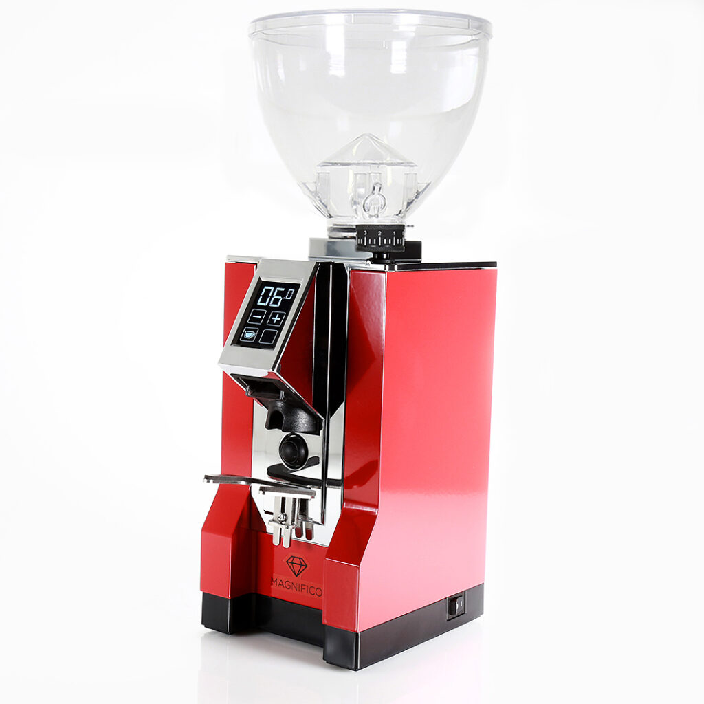 Die EUREKA MIGNON MAGNIFICO ist die Top- Mignon, die exklusiv nur von Fachhändlern des Espresso Partner Pool Netzwerks angeboten wird. Das Scheibenmahlwerk ist mit einer patentierten 55 mm Diamond Inside Hochleistungsmahlscheibe bestückt, die eine höhere Produktivität und Haltbarkeit aufweist als Standardmahlscheiben und dazu noch eine gleichmäßigere Granulometrie über die Nutzungszeit gewährleistet. Über das Touch-Display können zwei unterschiedliche Portioniereinstellungen programmiert werden und einen manuellen Modus gibt es auch. Die mikrometrische Mahlgradeinstellung erfolgt stufenlos über das angenehm große Drehrad. Natürlich verfügt sie auch über die ACE Technologie, gegen Verklumpen und elektrostatische Aufladung des Mahlguts.
