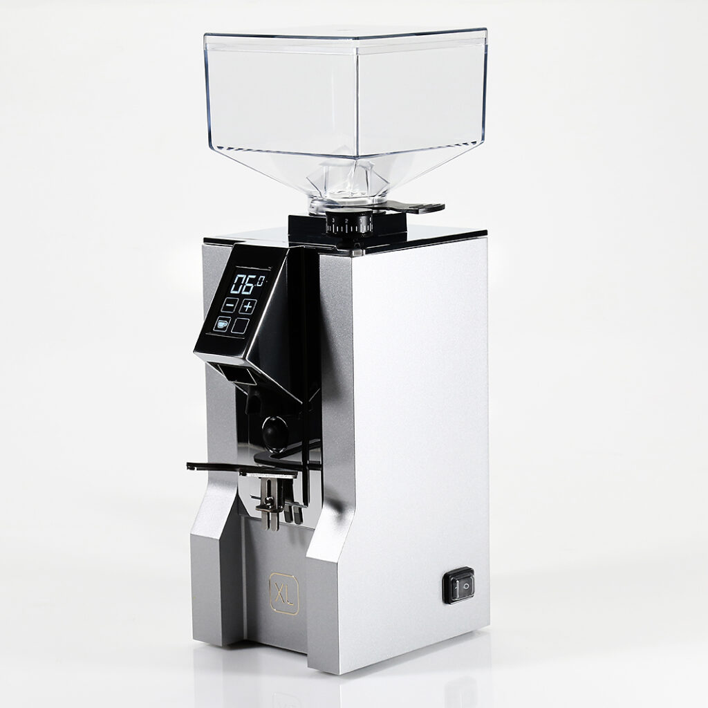 Die Mignon XL ist die erste Hochleistungsmühle, die Eureka unter dem Label Eureka Oro vermarktet. Mit seinem 65 mm Diamond Inside Scheibenmahlwerk, welches bisher nur aus der Atom Specialty Profi Serie bekannt ist, vermahlt sie pro Sekunde beeindruckende 2,3 – 2,8 g Mahlgut. Sie verfügt über das komfortable Touch-Display mit zwei programmierbaren Portioniereinstellungen und ist natürlich auch in geräuschreduzierter Bauweise konstruiert. Die ACE Technologie verhindert das Verklumpen und elektrostatische Aufladen des Mahlguts. Eine mikrometrische Mahlgradeinstellung erfolgt über ein angenehm großes Einstellrad. Die gummierte, abnehmbare und höhenverstellbare Siebträgergabel sorgt für ein für den Siebträger schonendes „Hands-Free“-Arbeiten. Mit der Mühle wird die speziell für Mignon Mühlen entwickelte Barista Matte, nebst Tamper Station und Reinigungspinsel, mitgeliefert. Wer nach professionellen Leistungsmerkmalen im Gewand einer Mignon sucht, der ist mit der Mignon XL bestens bedient.