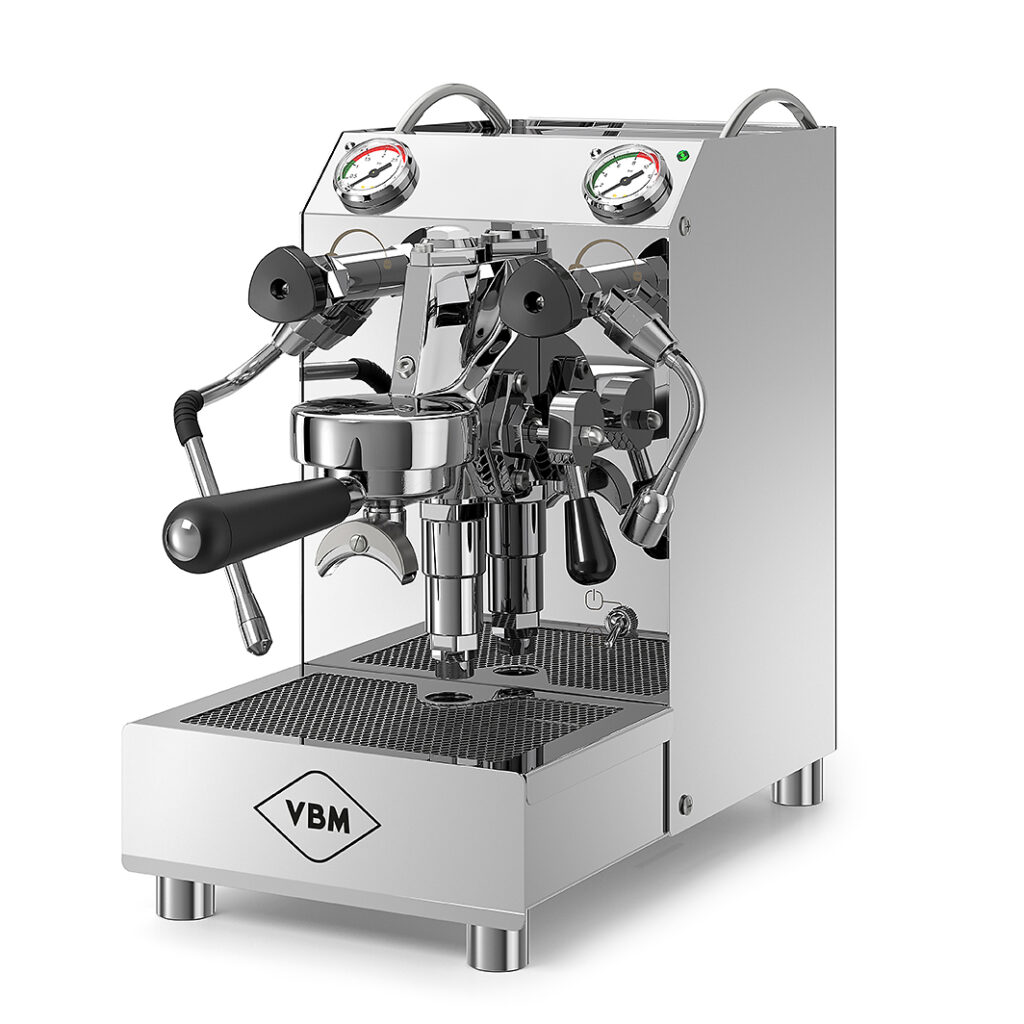 Im Jahre 1961 wurde die erste E-61 Espressomaschine gebaut, deren einfaches wie geniales Prinzip der permanenten thermischen Zirkulation im Brühkopf die Espressomaschinenlandschaft bis heute regiert. Als Erfinder dieses Meilensteins ging die Firma FAEMA, in Person von Ernesto Valente, in die Geschichte ein. Dieser Valente gründete später VBM und spendete das V seines Anfangsbuchstabens für die Namensgebung der legitimen Nachfolger der FAEMA Idee. VBM hat seinerzeit die VBM Profi Brühgruppe weiter entwickelt, patentiert und sowohl in Gastro- als auch Haushaltsmaschinen verbaut. Die JUNIOR HX ist einer der kleinsten klassischen Zweikreiser im Markt, schlicht und leistungsstark. Eine echte VBM eben.